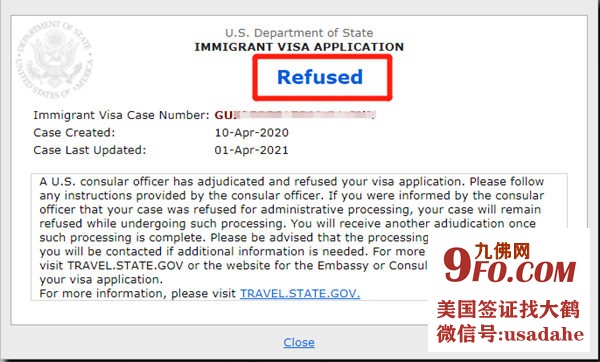 2、当案件一转到领事馆,直至面谈前,案件都会显示为“Refused”