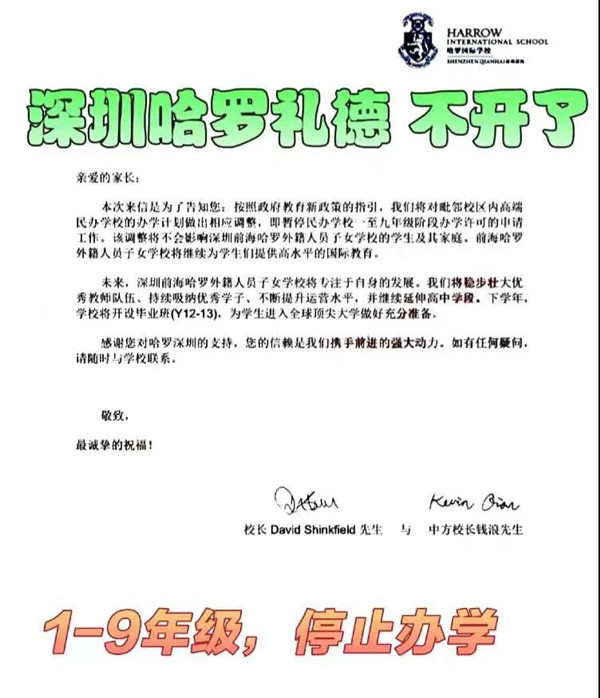 深圳哈罗礼德公学,也在前不久正式通知:必须参加中考才能上高中!