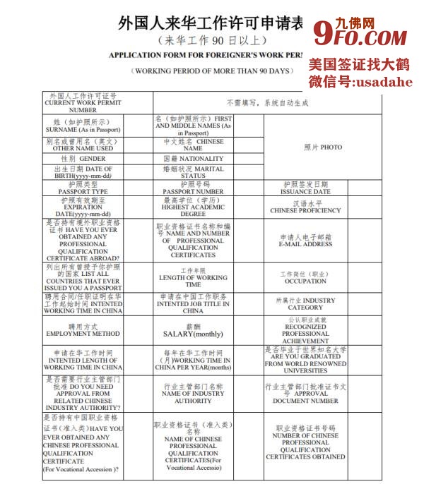 1. 外国人来华工作许可申请表