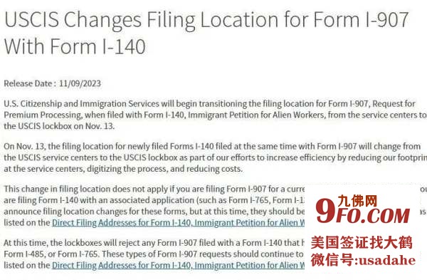 近期美国移民局宣布为了提高工作效率,会从今年11月13日开始变更美国职业移民I-140申请加急I-907的递送地址,新的寄送地址大家可以在移民局官网的I-140页面查询到。