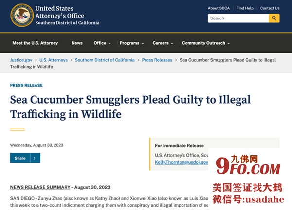 美签代办:入境不小心触犯走私罪,面临25年监禁,罚款50万美元。海参被视为珍馐,是一种备受追捧的商品,特别是在亚洲文化地区。然而,一些海参其实是受保护物种,私自携带过境可能带来大麻烦!两名华人就被控在美国的卡莱克西科(Calexico)入境口岸非法走私海参。本周,他们在圣地亚哥联邦法院认罪。二人分别为51 岁的朱某(音译)和 52 岁的肖某(音译),他们承认共谋和非法进口海参两项罪名。最高每人可判处25年监禁,50万罚款!